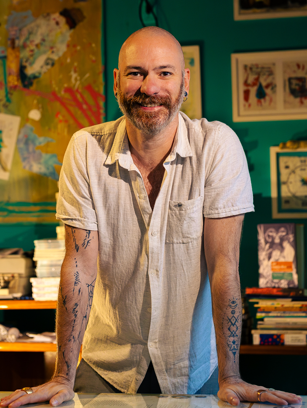 Fundador do NADA∴Studio Criativo, é poeta, cineasta e artista-etc cuja obra explora as poéticas do acaso em criações experimentais que transitam entre registro, memória e ficção.